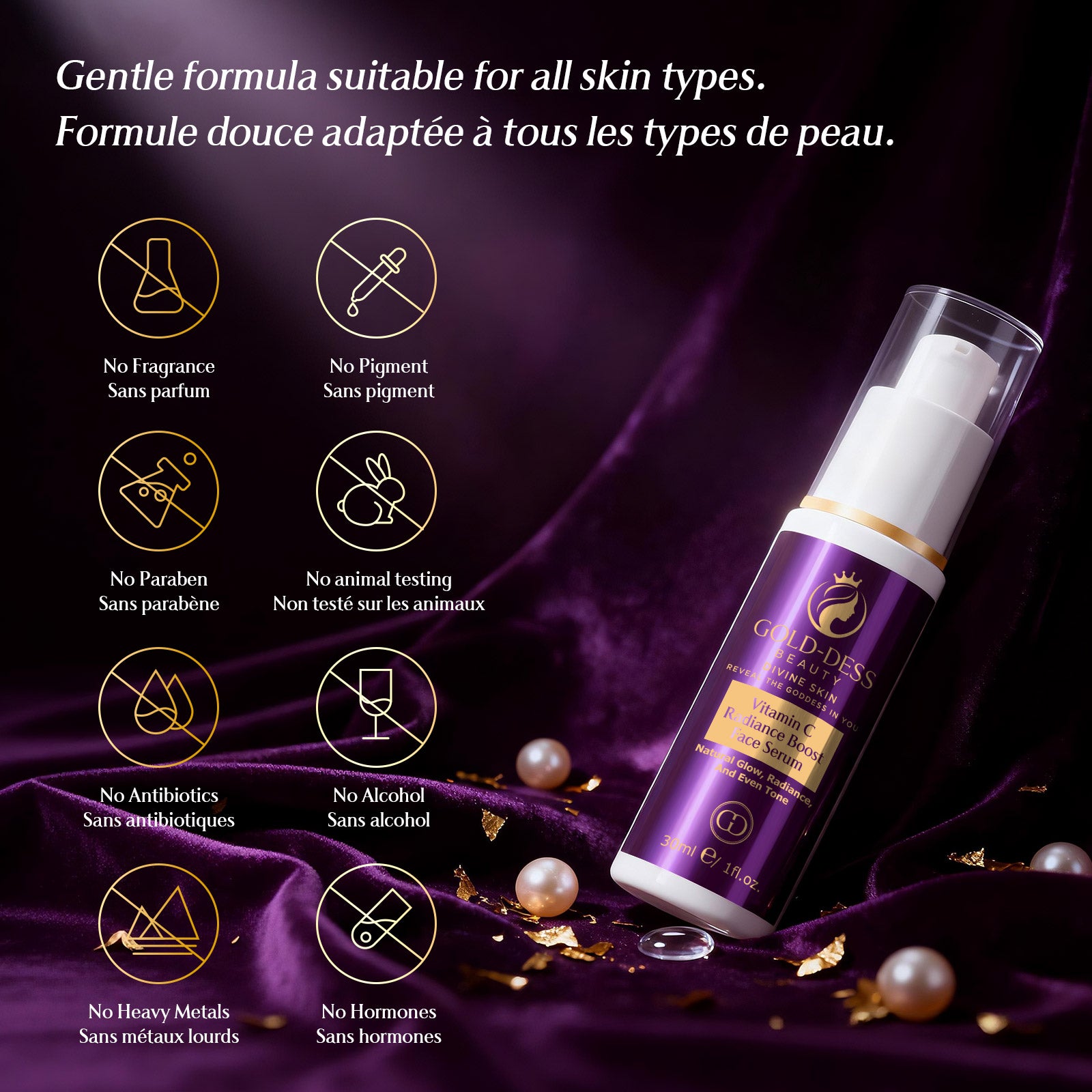 1 Ă Gold-Dess Beauty bag (included)