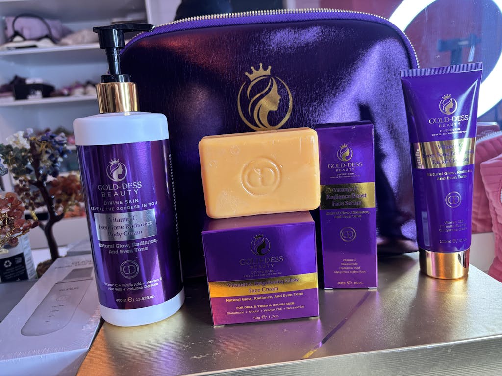 I received the Divine Glow Collection and I am in love with this whole collection. The packaging is elegant in deep purple and gold design. The bag is the perfect size for keeping all my skin care and the gold and purple colours stand out. The soap, body cream and skin care leave my face and body hydrated and very smooth. I use everyone of these products on a daily basis. I definitely recommend this collection. You will not be disappointed.